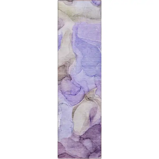 8' Runner Gray and Purple Abstract Washable Non Skid Indoor Outdoor Runner Rug