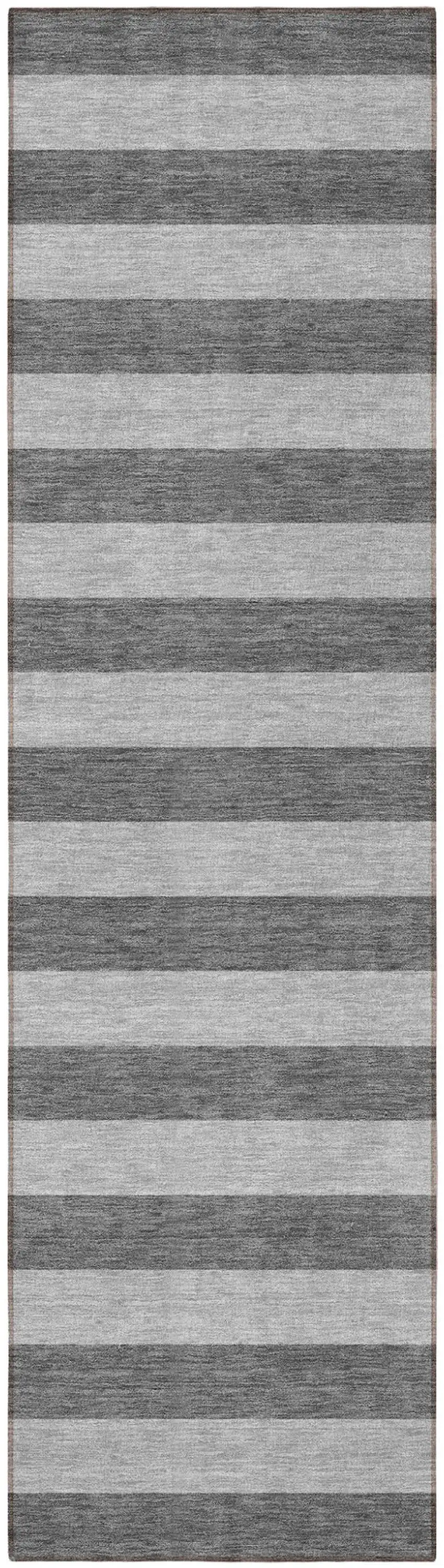 8' Runner Gray and White Striped Washable Non Skid Indoor Outdoor Runner Rug