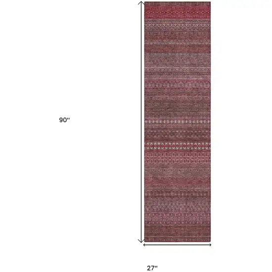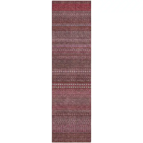 8' Runner Merlot Striped Washable Non Skid Indoor Outdoor Runner Rug