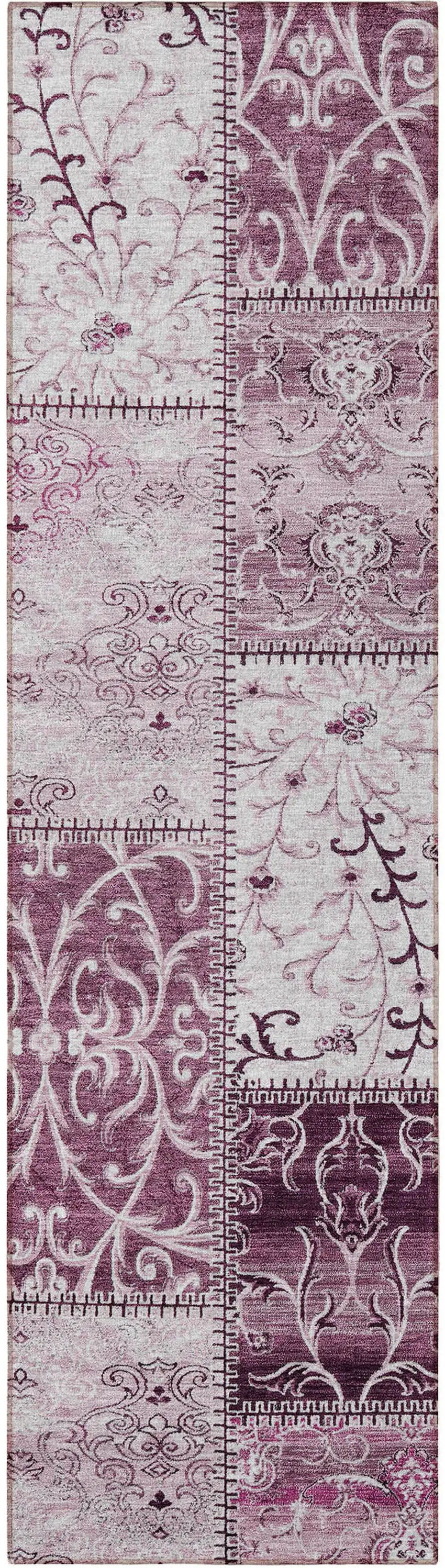 Add some artistry to your room with this 8-foot runner mountbatten pink patchwork washable stain resistant non skid indoor outdoor runner rug. This runner shaped rug features a patchwork design in mountbatten pink to give it visual interest. A classic shape marries with good looking design for your space ideal for spaces with kids and pets, this rug is stain resistant to help repel stains and spilled liquids. Area rugs help to give warmth and sense of home to your space. 27-inch H x 90-inch W x 0.19-inch D