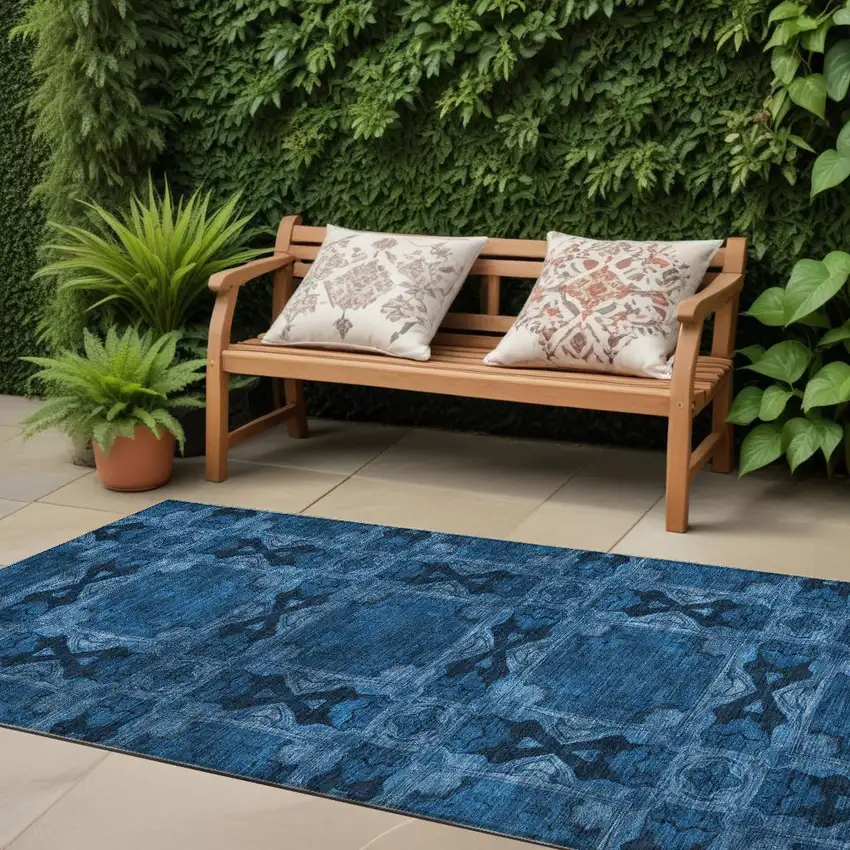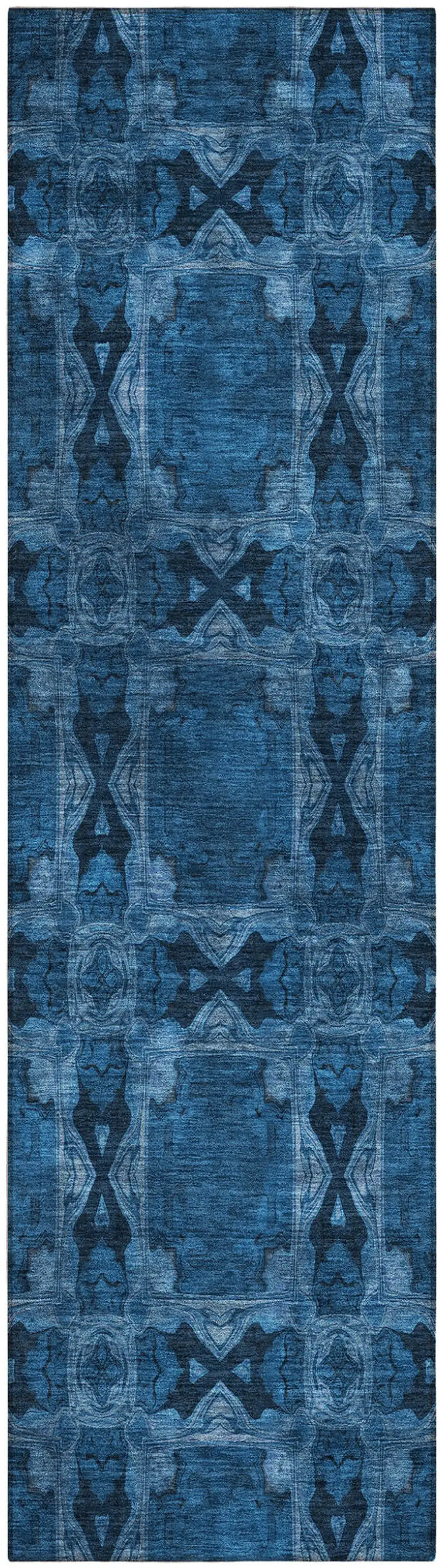 8' Runner Navy and Gray Floral Medallion Washable Non Skid Indoor Outdoor Runner Rug