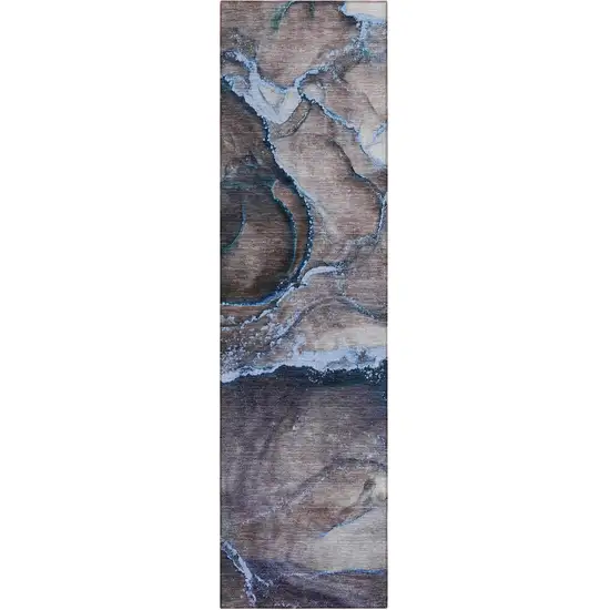 8' Runner Navy Blue Abstract Washable Non Skid Indoor Outdoor Runner Rug