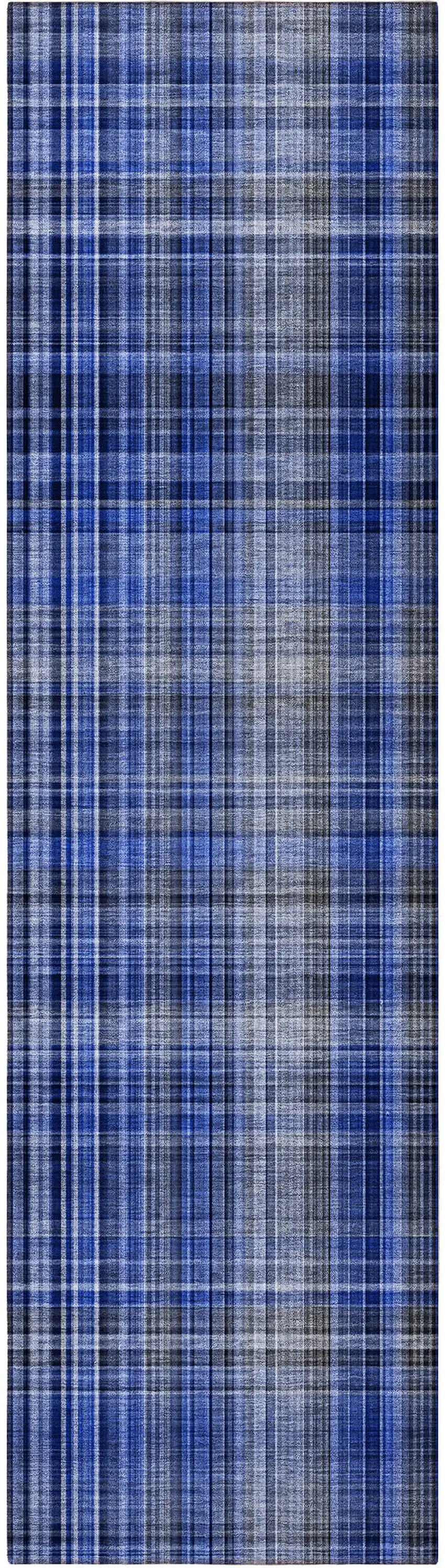 8' Runner Navy Blue Plaid Washable Non Skid Indoor Outdoor Runner Rug