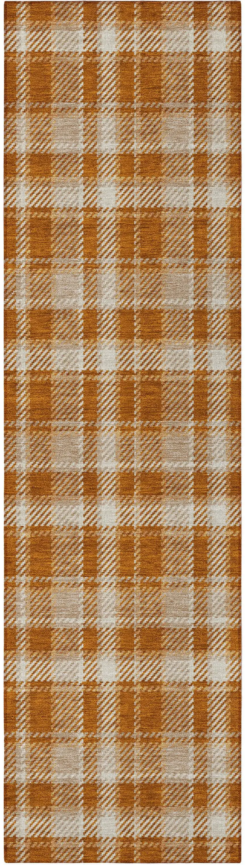 This 8-foot runner orange and ivory plaid washable stain resistant non skid indoor outdoor runner rug, is a great way to add warmth to a room. This runner shaped rug features a plaid design in orange and ivory to give it visual interest. A classic shape marries with good looking design for your space ideal for spaces with kids and pets, this rug is stain resistant to help repel stains and spilled liquids. Area rugs help to give warmth and sense of home to your space. 27-inch H x 90-inch W x 0.19-inch D