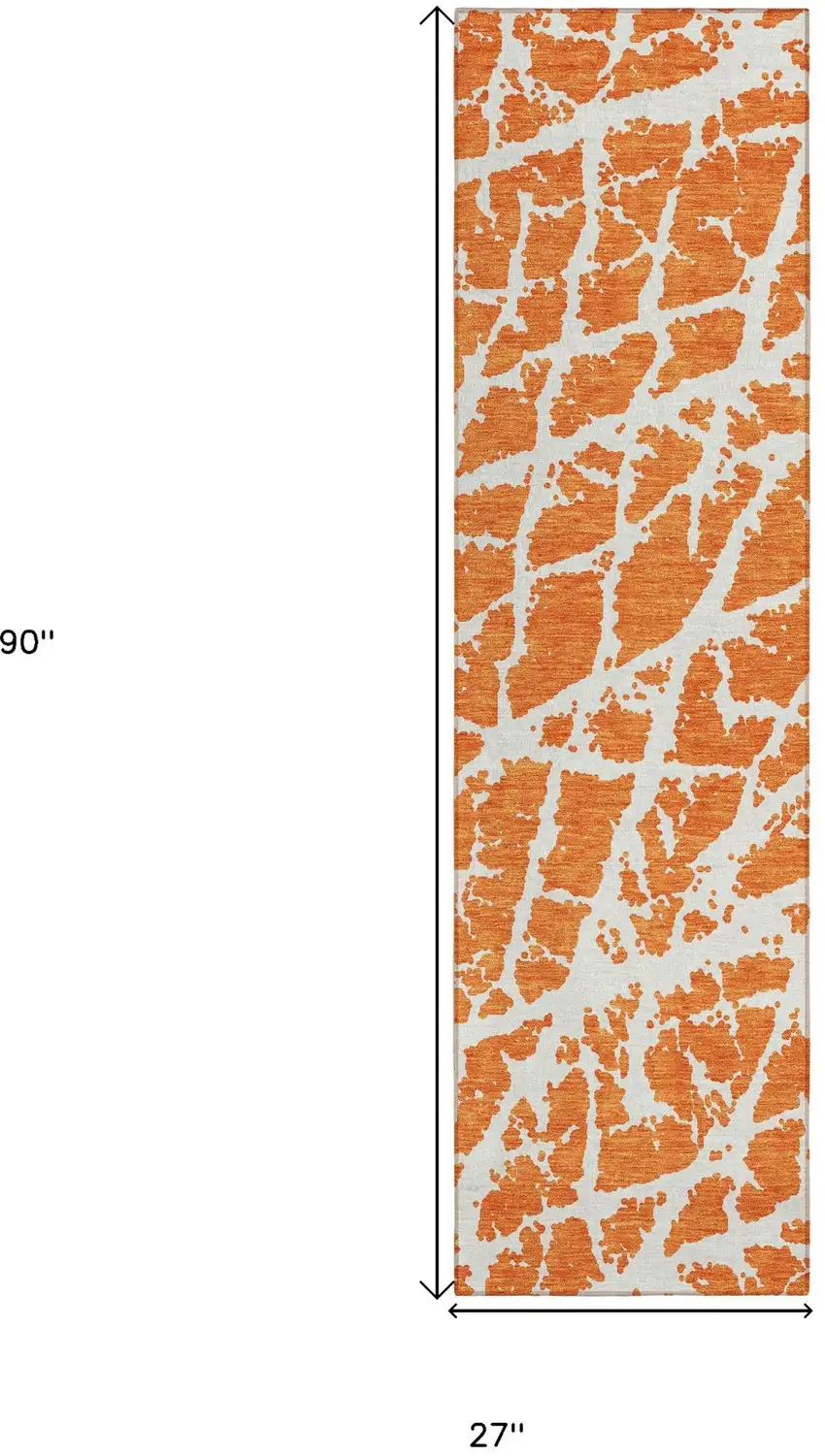 Set an inviting tone in your space with this 8-foot runner orange and white abstract washable stain resistant non skid indoor outdoor runner rug. This runner shaped rug features a abstract design in orange and white to give it visual interest. A classic shape marries with good looking design for your space ideal for spaces with kids and pets, this rug is stain resistant to help repel stains and spilled liquids. Area rugs help to give warmth and sense of home to your space. 27-inch H x 90-inch W x 0.19-inch D