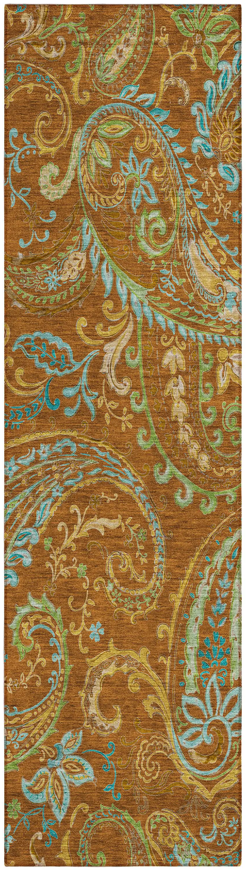 8' Runner Orange Paisley Washable Non Skid Indoor Outdoor Runner Rug