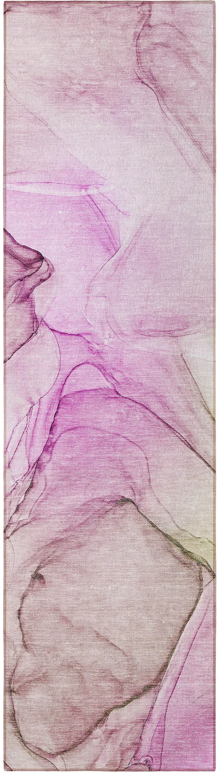8' Runner Pink Abstract Washable Non Skid Indoor Outdoor Runner Rug