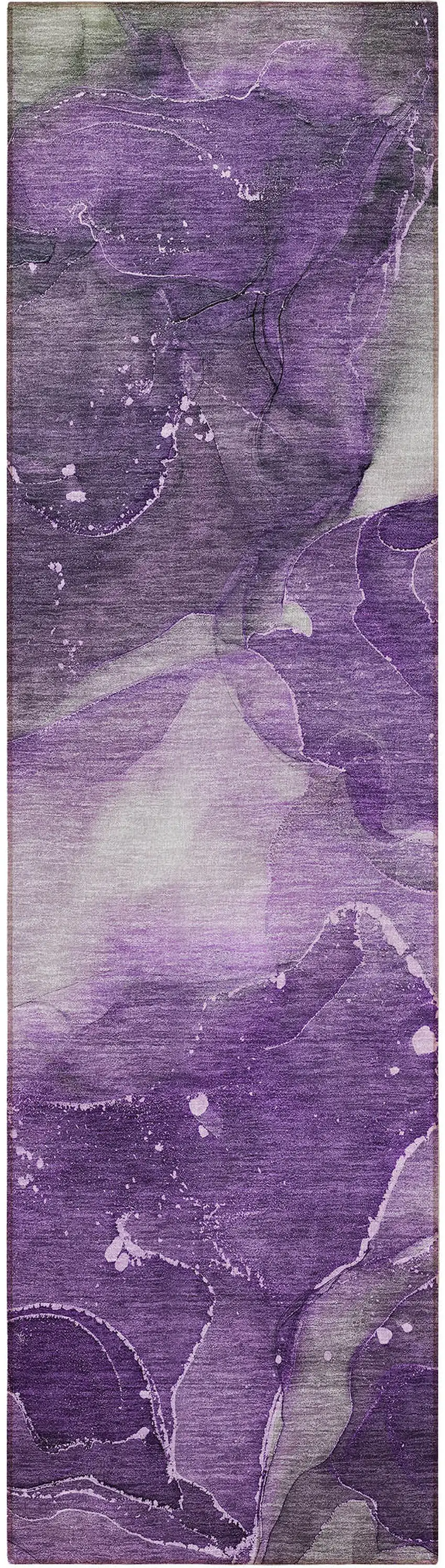 8' Runner Purple Abstract Washable Non Skid Indoor Outdoor Runner Rug