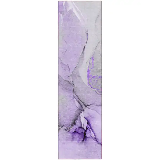 8' Runner Purple and Ivory Abstract Washable Non Skid Indoor Outdoor Runner Rug
