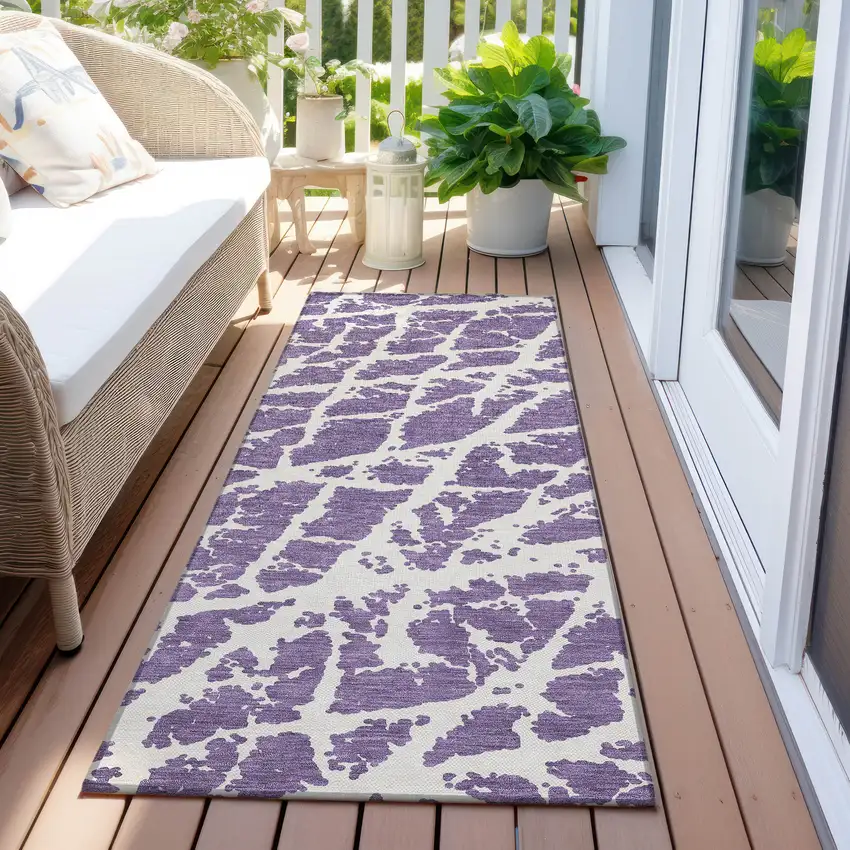 Set an inviting tone in your space with this 8-foot runner purple and white abstract washable stain resistant non skid indoor outdoor runner rug. This runner shaped rug features a abstract design in purple and white to give it visual interest. A classic shape marries with good looking design for your space ideal for spaces with kids and pets, this rug is stain resistant to help repel stains and spilled liquids. Place this area rug against a hardwood or tile floor and it will enliven your living space with style and sophistication. 27-inch H x 90-inch W x 0.19-inch D
