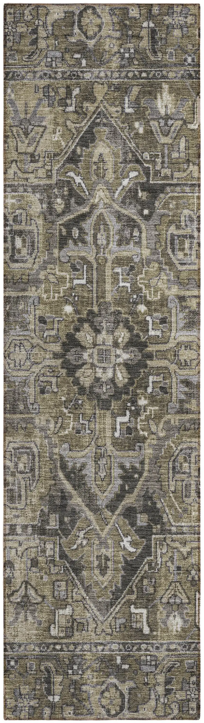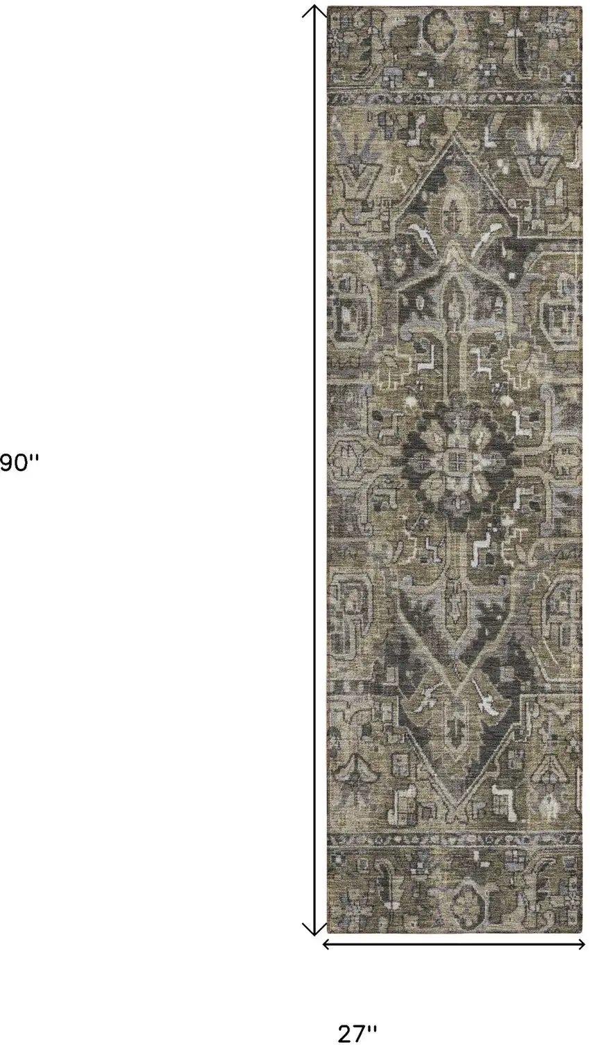 8' Runner Taupe and Dark Taupe Oriental Washable Non Skid Indoor Outdoor Runner Rug