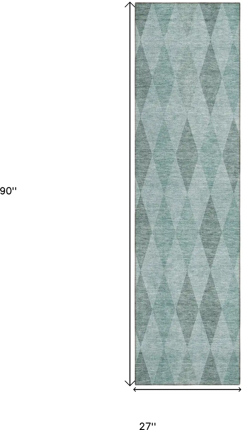 8' Runner Teal Geometric Washable Non Skid Indoor Outdoor Runner Rug