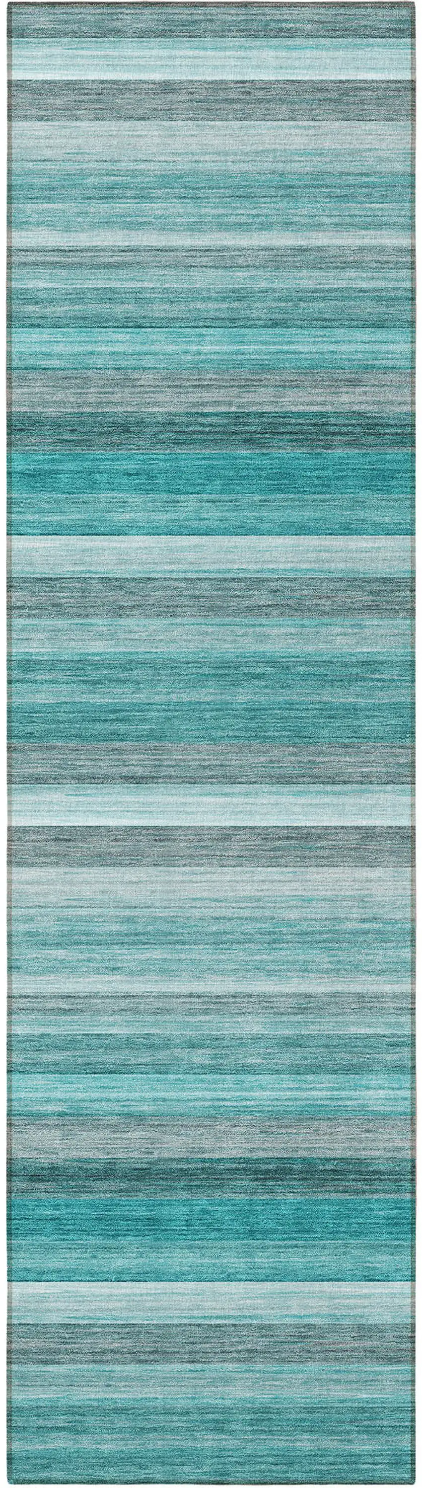 8' Runner Teal Striped Washable Non Skid Indoor Outdoor Runner Rug