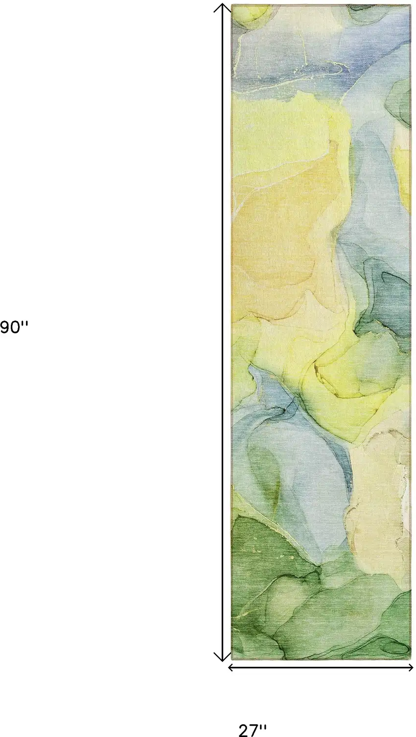 8' Runner Yellow Abstract Washable Non Skid Indoor Outdoor Runner Rug