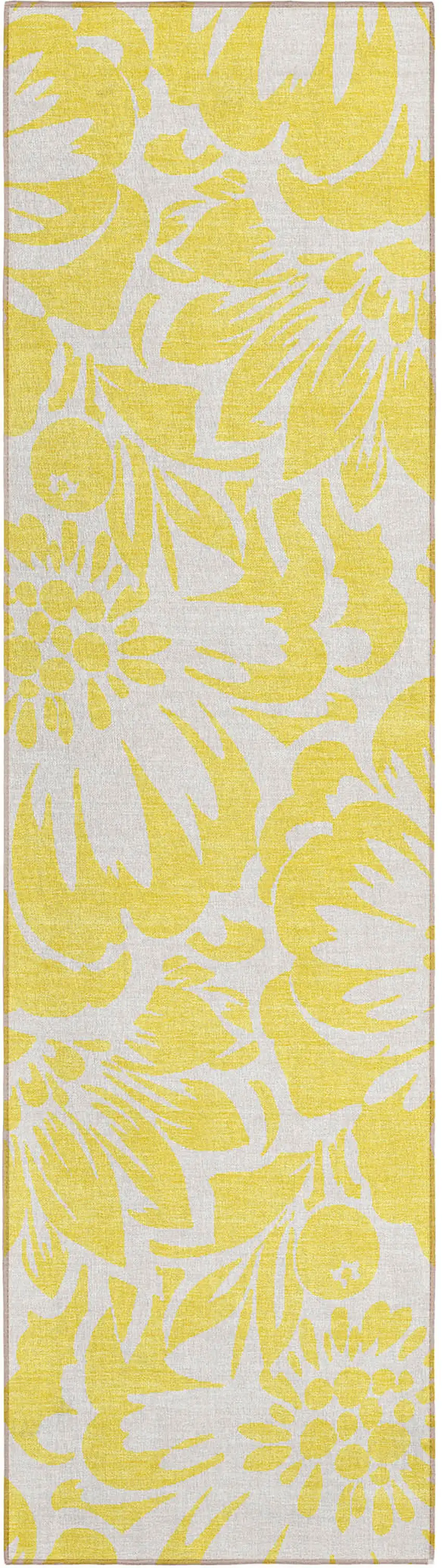 Add some artistry to your room with this 8-foot runner yellow and ivory floral washable stain resistant non skid indoor outdoor runner rug. This runner shaped rug features a floral design in yellow and ivory to give it visual interest. A classic shape marries with good looking design for your space ideal for spaces with kids and pets, this rug is stain resistant to help repel stains and spilled liquids. Place this area rug against a hardwood or tile floor and it will enliven your living space with style and sophistication. 27-inch H x 90-inch W x 0.19-inch D