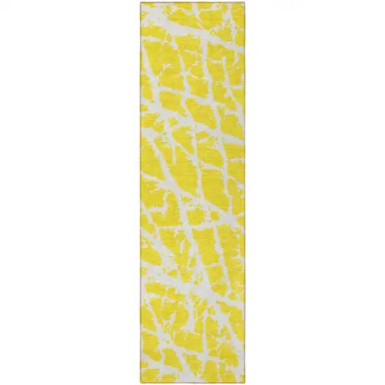 8' Runner Yellow and White Abstract Washable Non Skid Indoor Outdoor Runner Rug