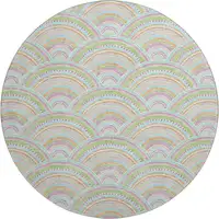 8' Rust And Beige Medallion Washable Round Rug With UV Protection