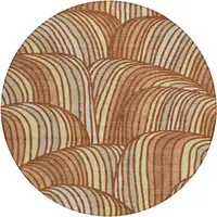 8' Rust And Beige Round Abstract Washable Indoor Outdoor Area Rug