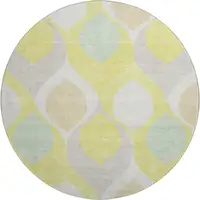 8' Rust And Ivory Abstract Washable Round Rug With UV Protection