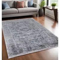 8' Rust Gray And Gold Oriental Washable Round Rug With UV Protection