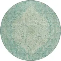 8' Sage And Beige Round Striped Washable Indoor Outdoor Area Rug