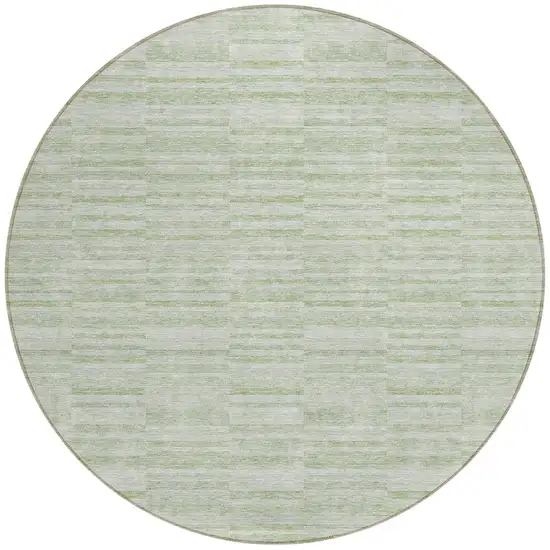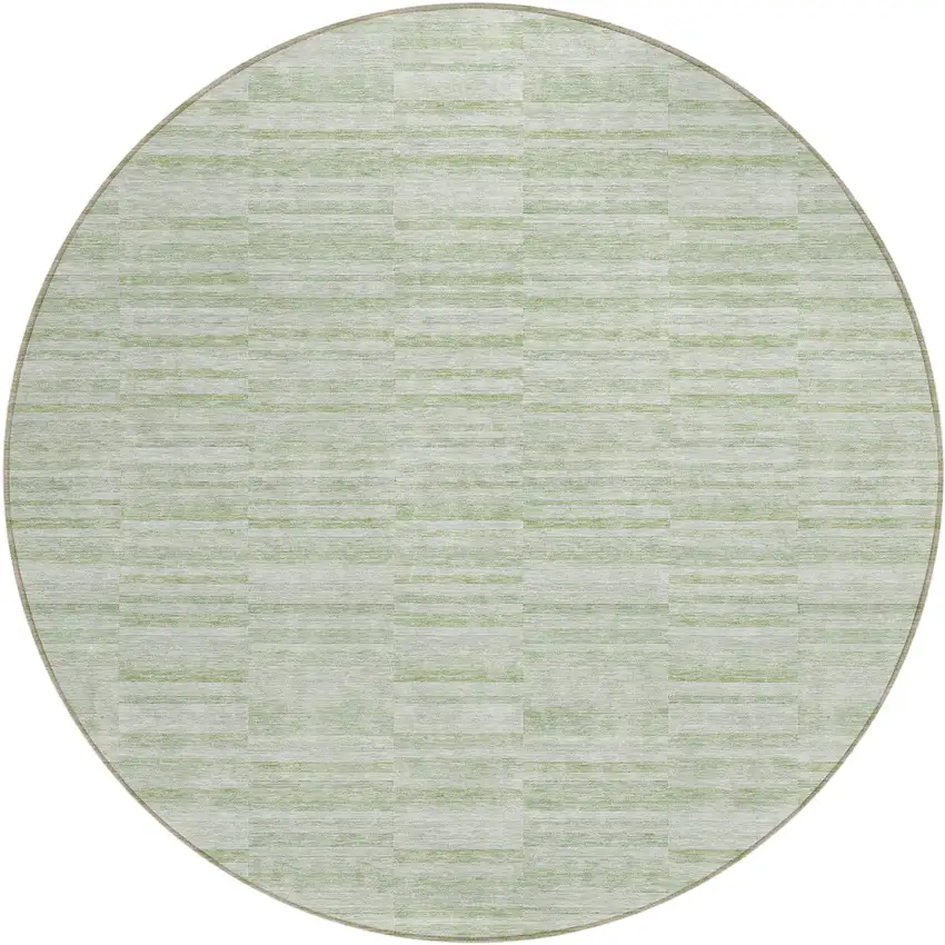 8' Sage And Green Round Striped Washable Indoor Outdoor Area Rug