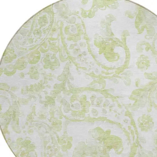 Add great coloration and comfortable texture to your space with this 8-foot sage green and ivory round paisley washable indoor outdoor area rug. This geometric round shaped rug features a paisley pattern in sage, green, and ivory that combines a good looking print with a unique and updated shape. The mix of shape, color, and design gives this rug refreshing visual interest. Ideal for outdoor spaces or high traffic areas with kids and pets, this rug is made from heavy duty polyester that is stain resistant to help repel water, dirt, and stains. Versatile in use, durable, and easy to maintain, this rug is an ideal solution to add a decorative and inviting touch to your indoor or outdoor space. 96-inch h x 96-inch w x 0.19-inch d.