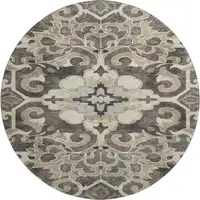 8' Salmon And Ivory Abstract Washable Round Rug With UV Protection