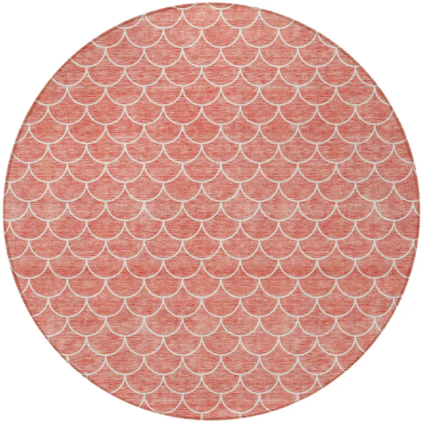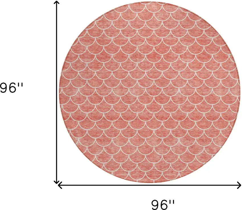 8' Salmon And Ivory Round Geometric Washable Indoor Outdoor Area Rug