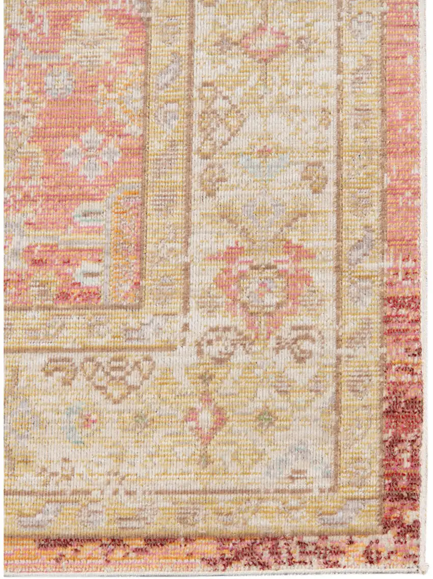 8' Salmon Floral Power Loom Runner Rug