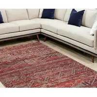 8' Salmon Ivory And Gray Geometric Washable Round Rug With UV Protection