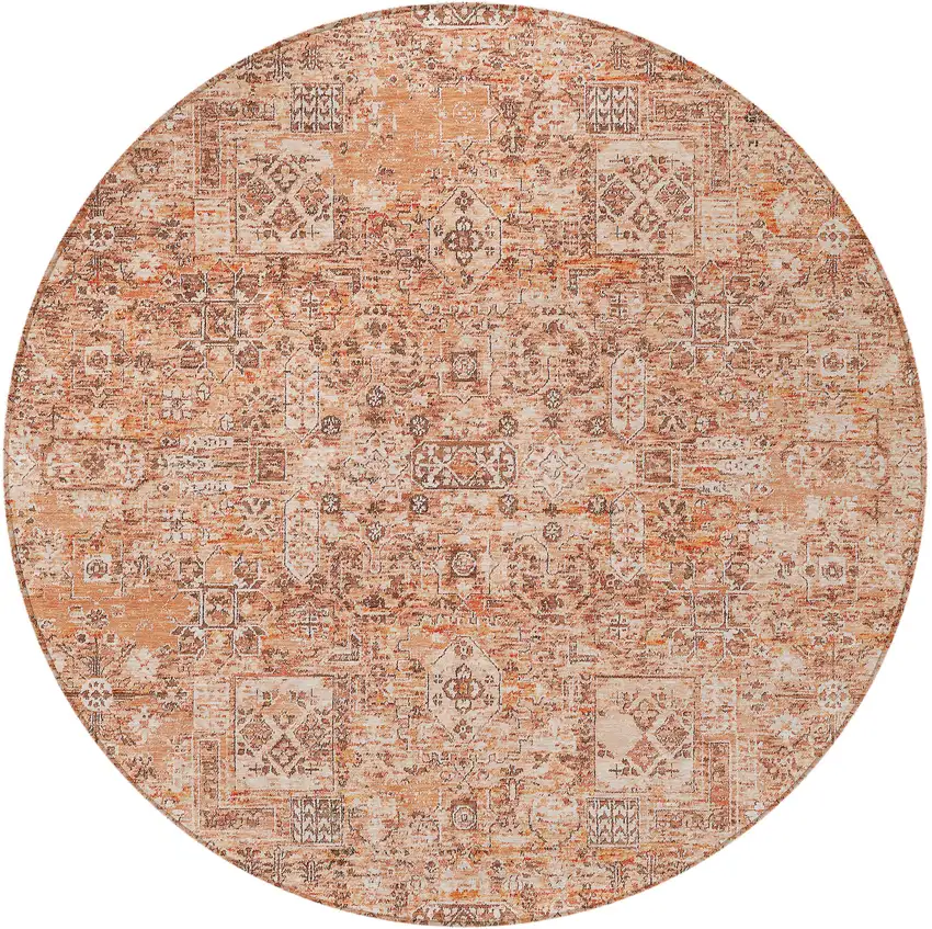 8' Salmon Orange And Gray Round Floral Washable Indoor Outdoor Area Rug