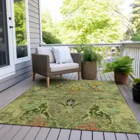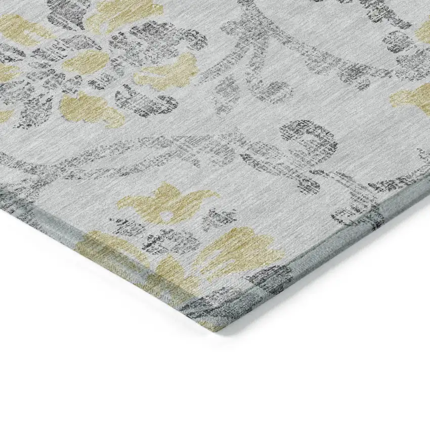 8' Silver Gray And Gold Round Floral Washable Indoor Outdoor Area Rug