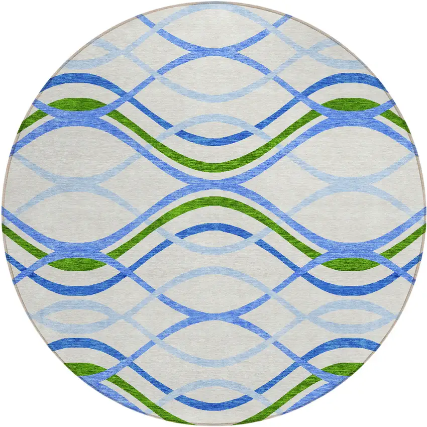 Add great coloration and comfortable texture to your space with this 8-foot sky blue and beige round abstract washable indoor outdoor area rug. This geometric round shaped rug features a abstract pattern in sky blue and beige that combines a good looking print with a unique and updated shape. The mix of shape, color, and design gives this rug refreshing visual interest. Ideal for outdoor spaces or high traffic areas with kids and pets, this rug is made from heavy duty polyester that is stain resistant to help repel water, dirt, and stains. Versatile in use, durable, and easy to maintain, this rug is an ideal solution to add a decorative and inviting touch to your indoor or outdoor space. 96-inch h x 96-inch w x 0.19-inch d.