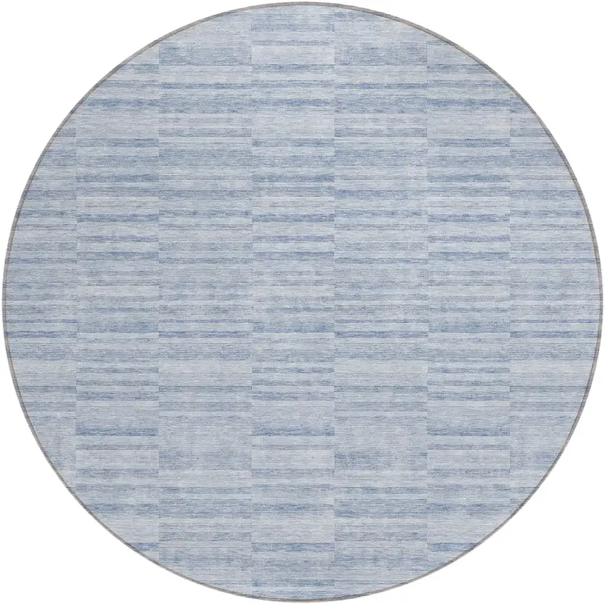 8' Sky Blue And Denim Blue Round Striped Washable Indoor Outdoor Area Rug