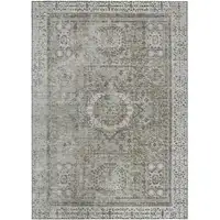 8' Sky Blue And Ivory Round Abstract Washable Indoor Outdoor Area Rug