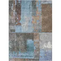 8' Sky Blue And Ivory Round Striped Washable Indoor Outdoor Area Rug