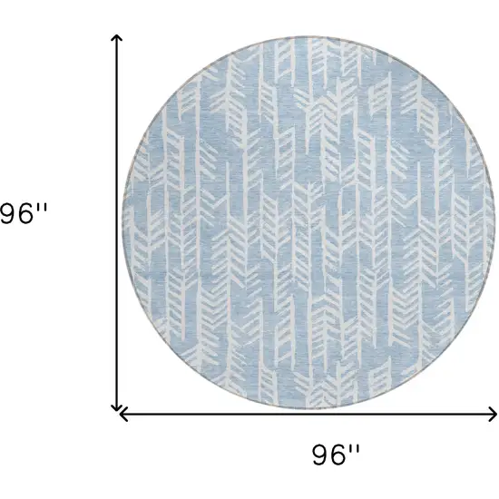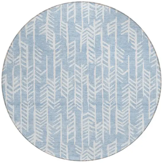 8' Sky Blue And Ivory Round Tribal Washable Indoor Outdoor Area Rug