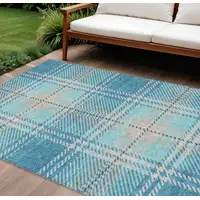 8' Sky Blue Gray And Ivory Round Striped Washable Indoor Outdoor Area Rug