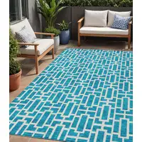 Set an inviting tone in your space with this 8-foot sky blue navy blue and ivory round geometric washable indoor outdoor area rug. This geometric round shaped rug features a geometric pattern in sky blue, navy blue, and ivory that combines a good looking print with a unique and updated shape. The mix of shape, color, and design gives this rug refreshing visual interest. Ideal for outdoor spaces or high traffic areas with kids and pets, this rug is made from heavy duty polyester that is stain resistant to help repel water, dirt, and stains. Versatile in use, durable, and easy to maintain, this rug is an ideal solution to add a decorative and inviting touch to your indoor or outdoor space. 96-inch h x 96-inch w x 0.19-inch d.