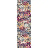 8' Tan Blue and Brown Oriental Power Loom Runner Rug With Fringe