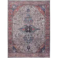 8' Tan Gold And Brown Geometric Washable Round Rug With UV Protection