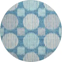 8' Taupe And Beige Medallion Washable Round Rug With UV Protection