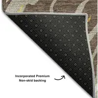 This 8-foot taupe and charcoal ikat washable round rug with uv protection, is a great way to add warmth to a room. Ideal for spaces with kids and pets, this rug is stain resistant to help repel dirt and spilled liquids. Built to last, this rug crafted from polyester fibers is known for its durability and long lasting appeal. Rugs are a great way to showcase your style, hide imperfections, warm your home and reduce noise. This larger sized, transitional styled rug is ready to create a focal point or statement piece in your room. 96.00-inch h x 96.00-inch w x 0.39-inch d.