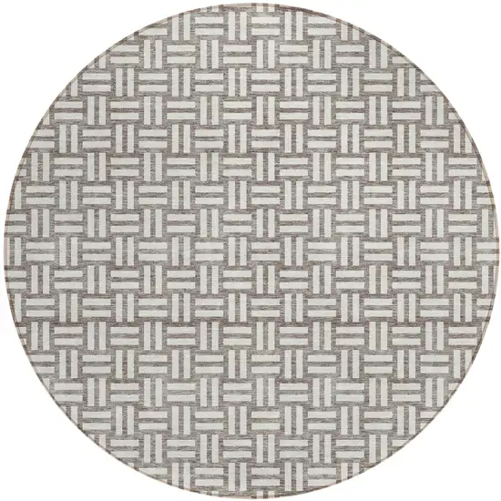 Add some artistry to your room with this 8-foot taupe and gray round geometric washable indoor outdoor area rug. This geometric round shaped rug features a geometric pattern in taupe and gray that combines a good looking print with a unique and updated shape. The mix of shape, color, and design gives this rug refreshing visual interest. Ideal for outdoor spaces or high traffic areas with kids and pets, this rug is made from heavy duty polyester that is stain resistant to help repel water, dirt, and stains. Makes a great way to dress up your patio, porch, or poolside, but also works well as a durable and easy to maintain option in the kitchen, family room, or mudroom. 96-inch h x 96-inch w x 0.19-inch d.