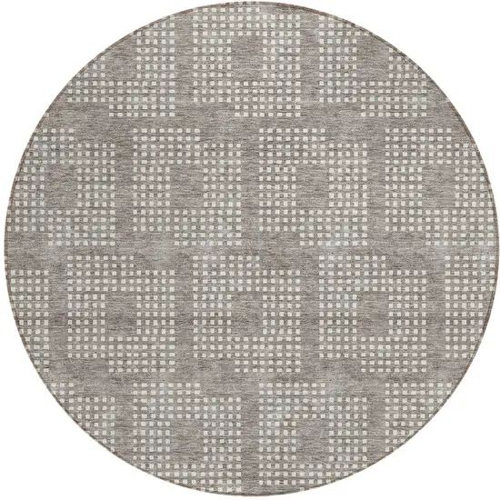 8' Taupe And Ivory Round Geometric Washable Indoor Outdoor Area Rug