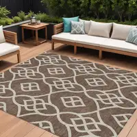 Add some artistry to your room with this 8-foot taupe and ivory round striped washable indoor outdoor area rug. This geometric round shaped rug features a striped pattern in taupe and ivory that combines a good looking print with a unique and updated shape. The mix of shape, color, and design gives this rug refreshing visual interest. Ideal for outdoor spaces or high traffic areas with kids and pets, this rug is made from heavy duty polyester that is stain resistant to help repel water, dirt, and stains. Makes a great way to dress up your patio, porch, or poolside, but also works well as a durable and easy to maintain option in the kitchen, family room, or mudroom. 96-inch h x 96-inch w x 0.19-inch d.