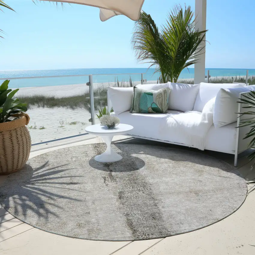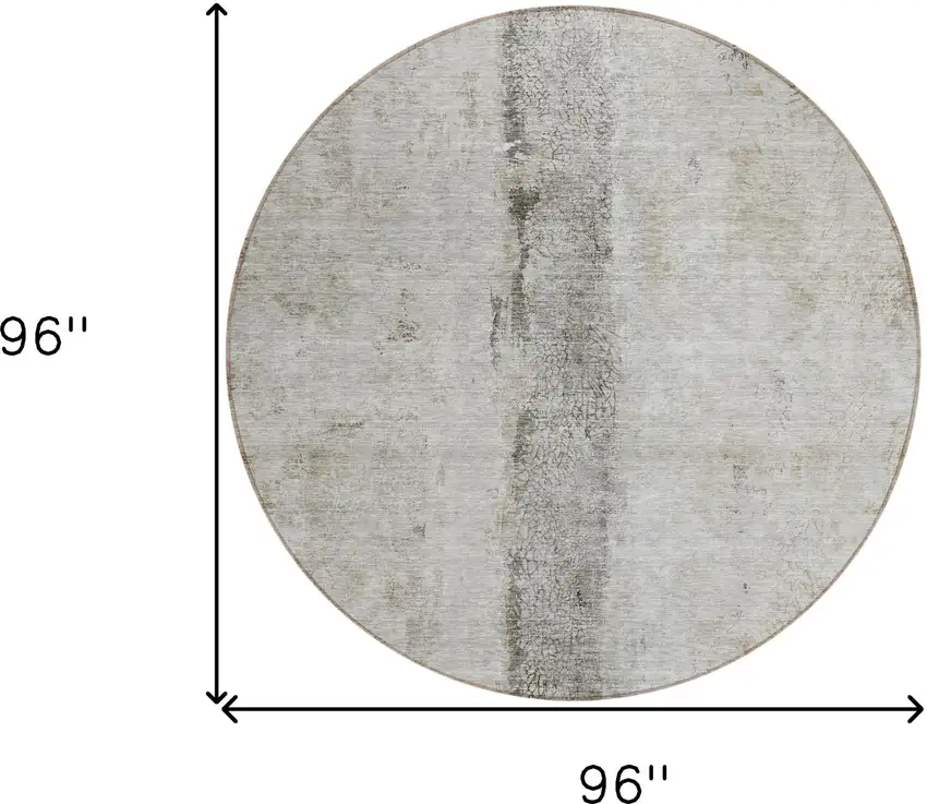 Add great coloration and comfortable texture to your space with this 8-foot taupe beige and gray round abstract washable indoor outdoor area rug. This geometric round shaped rug features a abstract pattern in taupe, beige, and gray that combines a good looking print with a unique and updated shape. The mix of shape, color, and design gives this rug refreshing visual interest. Ideal for outdoor spaces or high traffic areas with kids and pets, this rug is made from heavy duty polyester that is stain resistant to help repel water, dirt, and stains. Makes a great way to dress up your patio, porch, or poolside, but also works well as a durable and easy to maintain option in the kitchen, family room, or mudroom. 96-inch h x 96-inch w x 0.19-inch d.