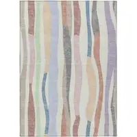 8' Taupe Beige And Ivory Round Abstract Washable Indoor Outdoor Area Rug