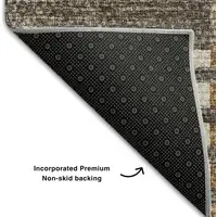 8' Taupe Blue And Ivory Abstract Washable Round Rug With UV Protection